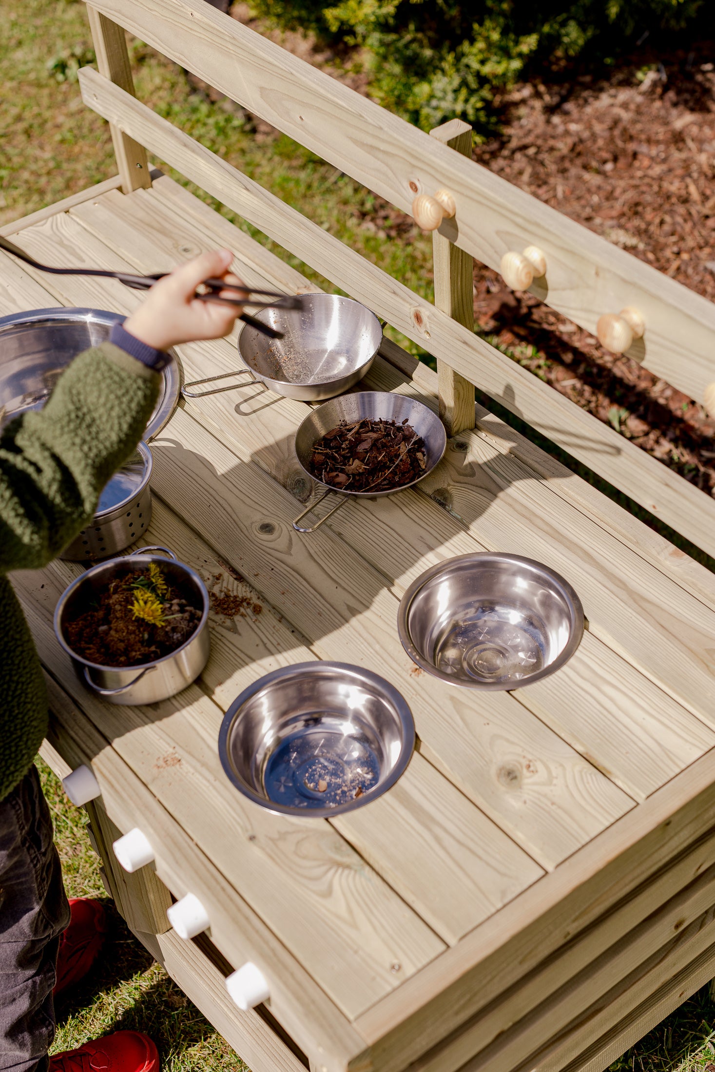Fabriquée à partir de matériaux de première qualité, notre cuisine de boue est robuste, sûre et facile à assembler – prête pour des années de jeux créatifs en plein air.