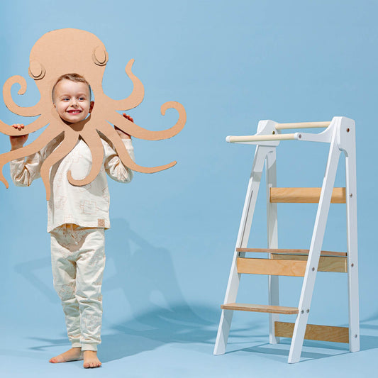 Pour ceux qui sont encore un peu trop petits pour atteindre les surfaces supérieures sans aide, mais qui ont déjà dépassé l'époque des tours de cuisine !