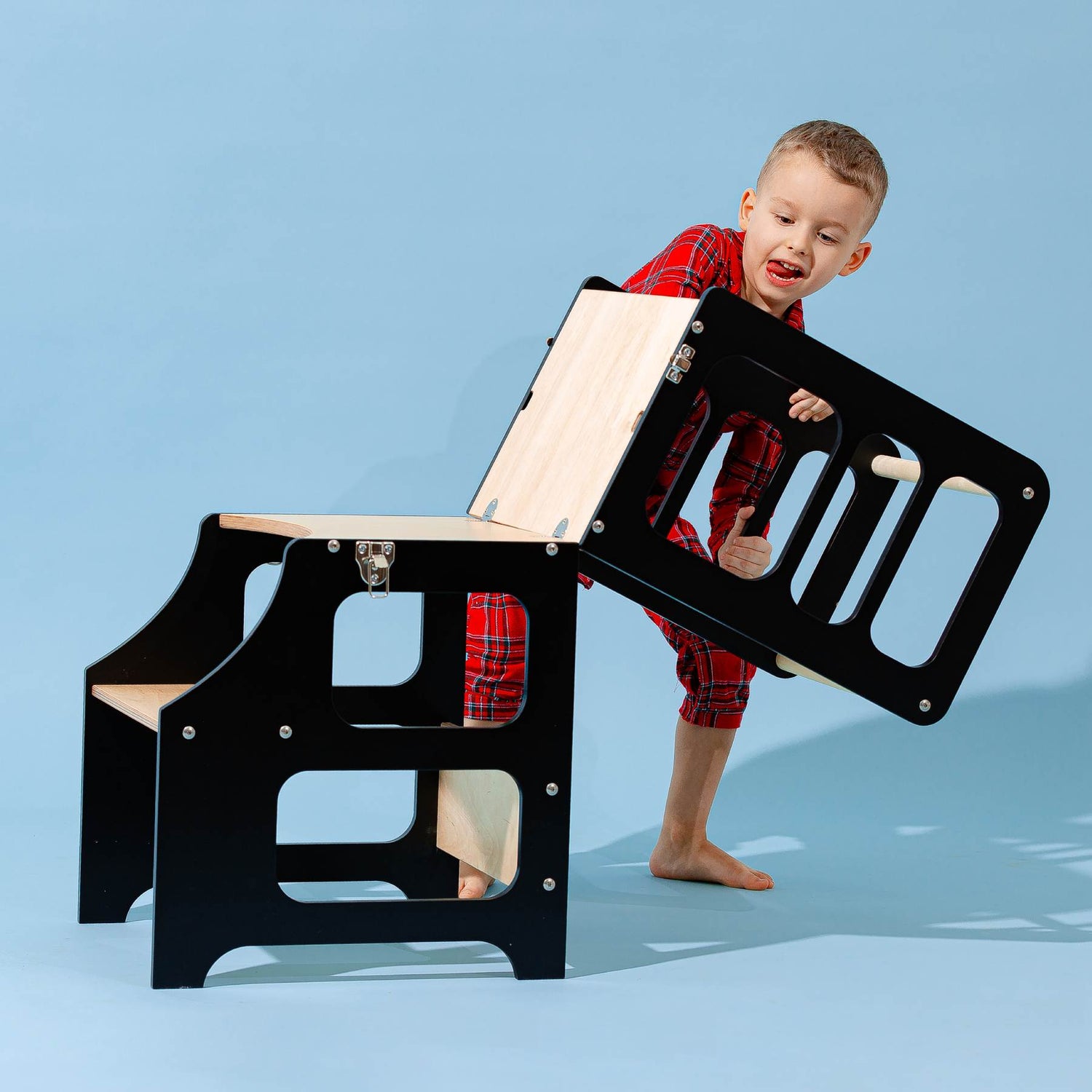 Pour ceux qui recherchent à la fois des tours de cuisine et des ensembles table et chaises pour enfants, la tour de cuisine pliante est une solution : utilisez-la comme tour de cuisine ou pliez-la et utilisez-la comme table avec une chaise !