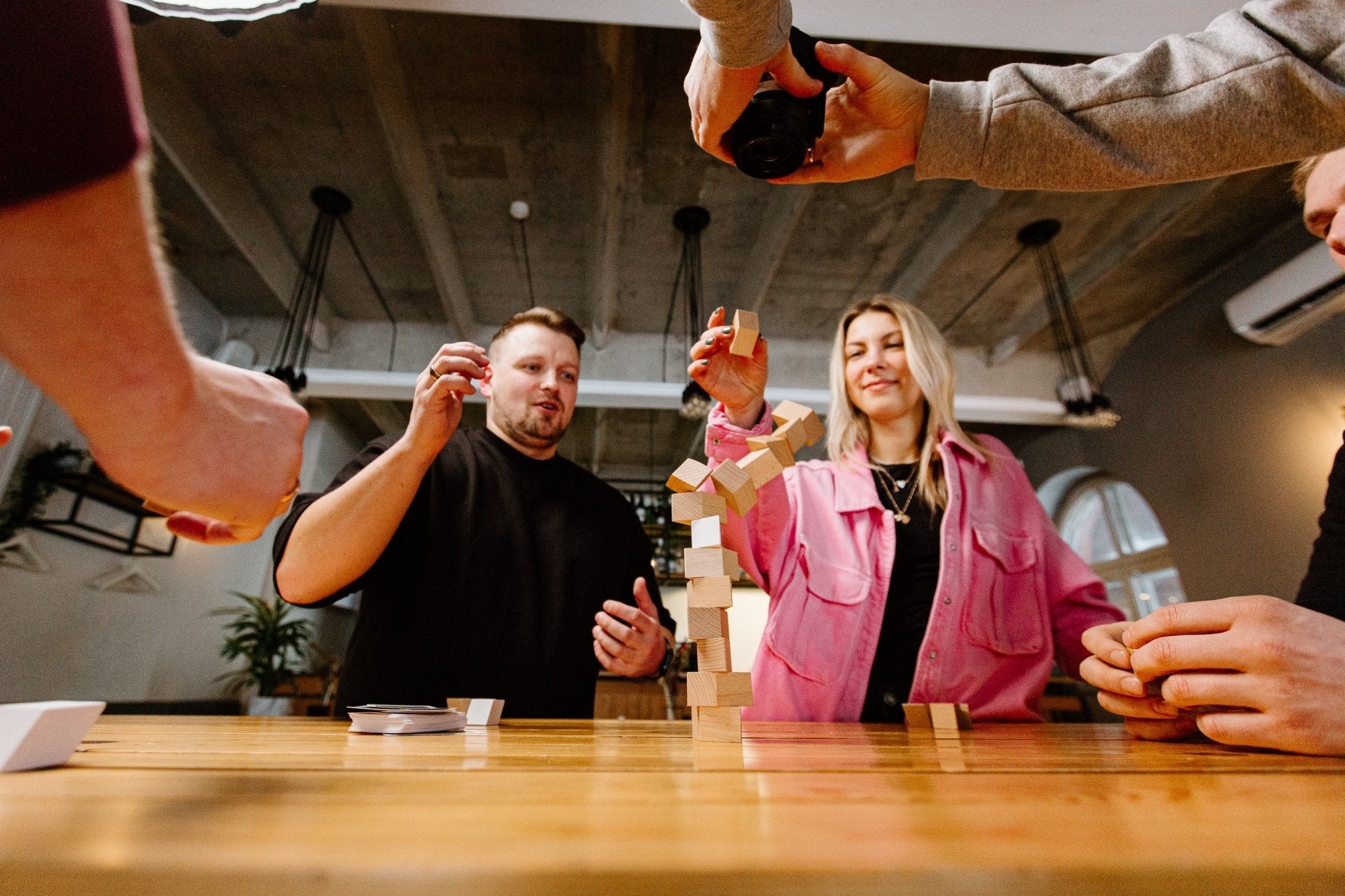 Duck You! est un jeu de société de construction de tours avec des cartes à actions. Contrairement à ce que certains pourraient penser, il n'a rien à voir avec Jenga. Il se compose de pièces en bois aux formes uniques que les joueurs peuvent empiler à leur guise.