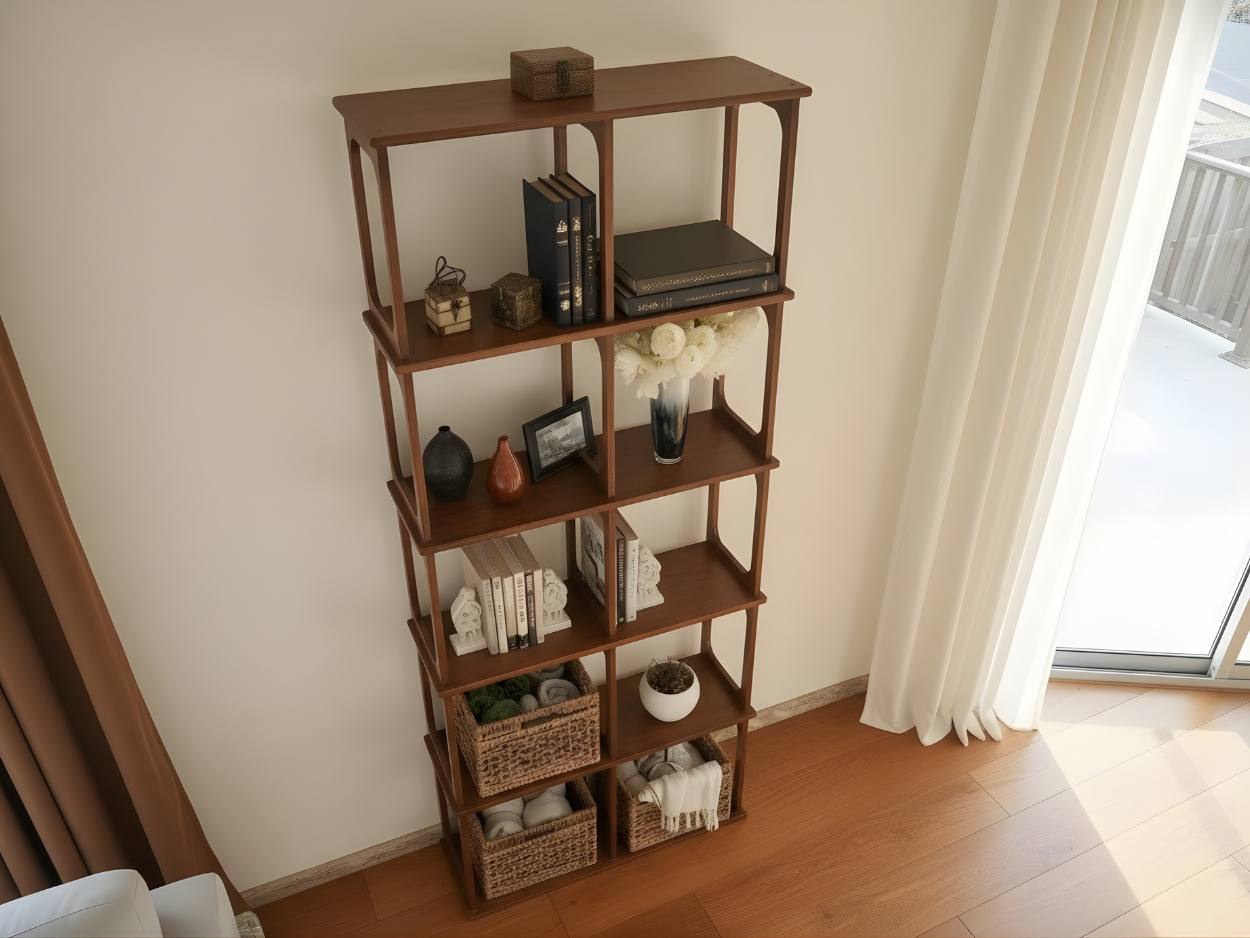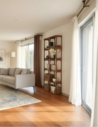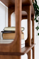 Apportez une touche d'élégance intemporelle à votre intérieur avec cette étagère artisanale de style moderne du milieu du siècle. Fabriquée en bois de haute qualité et finie dans des tons naturels et chaleureux, cette étagère allie style et fonctionnalité. Ses lignes épurées et sa structure géométrique en font la pièce maîtresse idéale pour un salon, un bureau, une salle à manger ou une entrée.