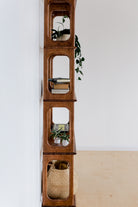 Étagère en bois style moderne du milieu du siècle | motif nid d'abeille