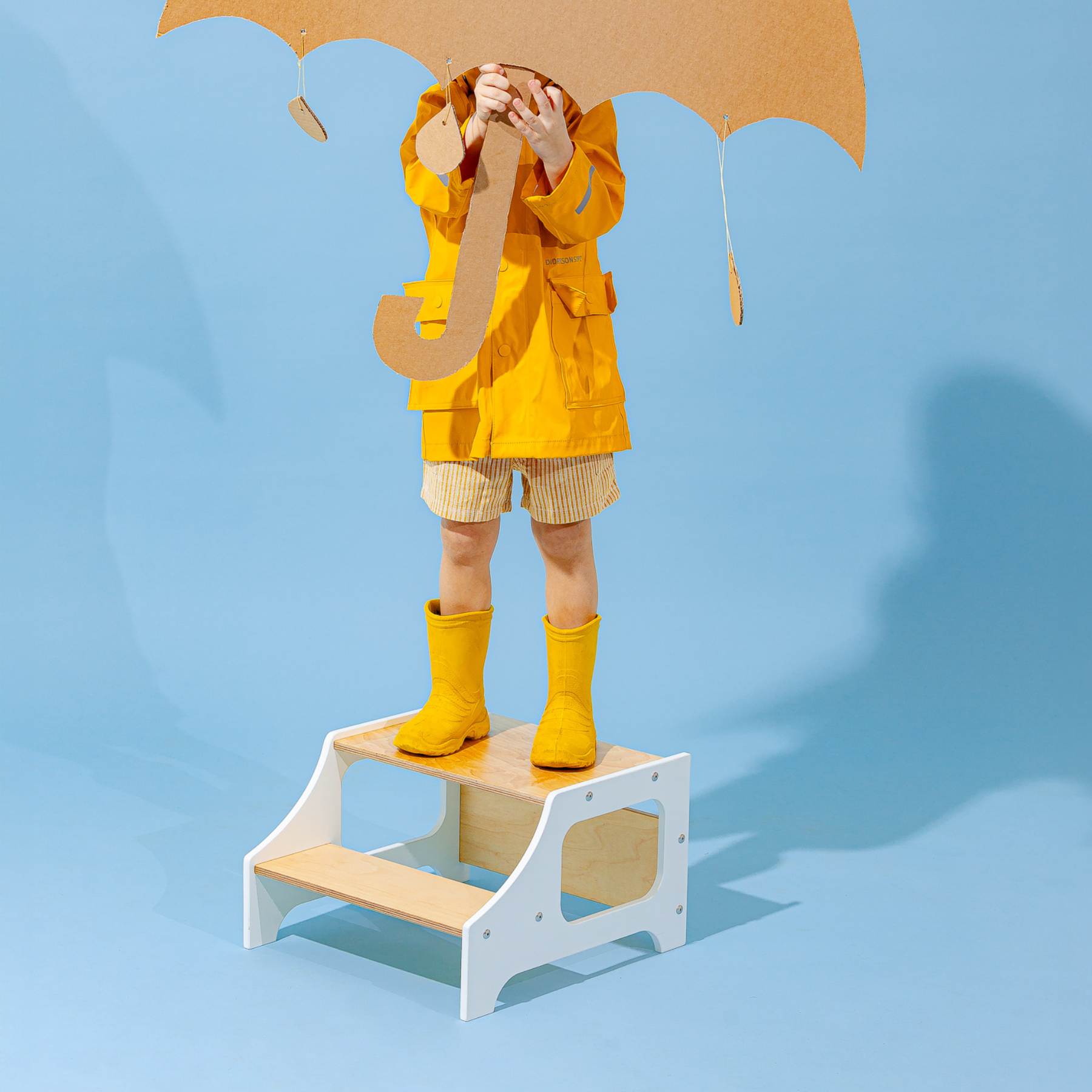 Le marchepied est fabriqué à partir de contreplaqué de bouleau de qualité (certifié FSC) et le produit est testé pour être conforme à la norme européenne de sécurité des jouets EN 71-3